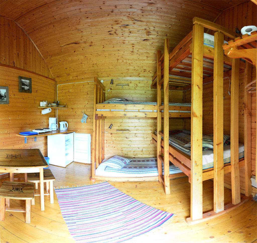 The newest cottage has 12 places in total + showers and toilet. Three 2-person rooms and two 3-person rooms.